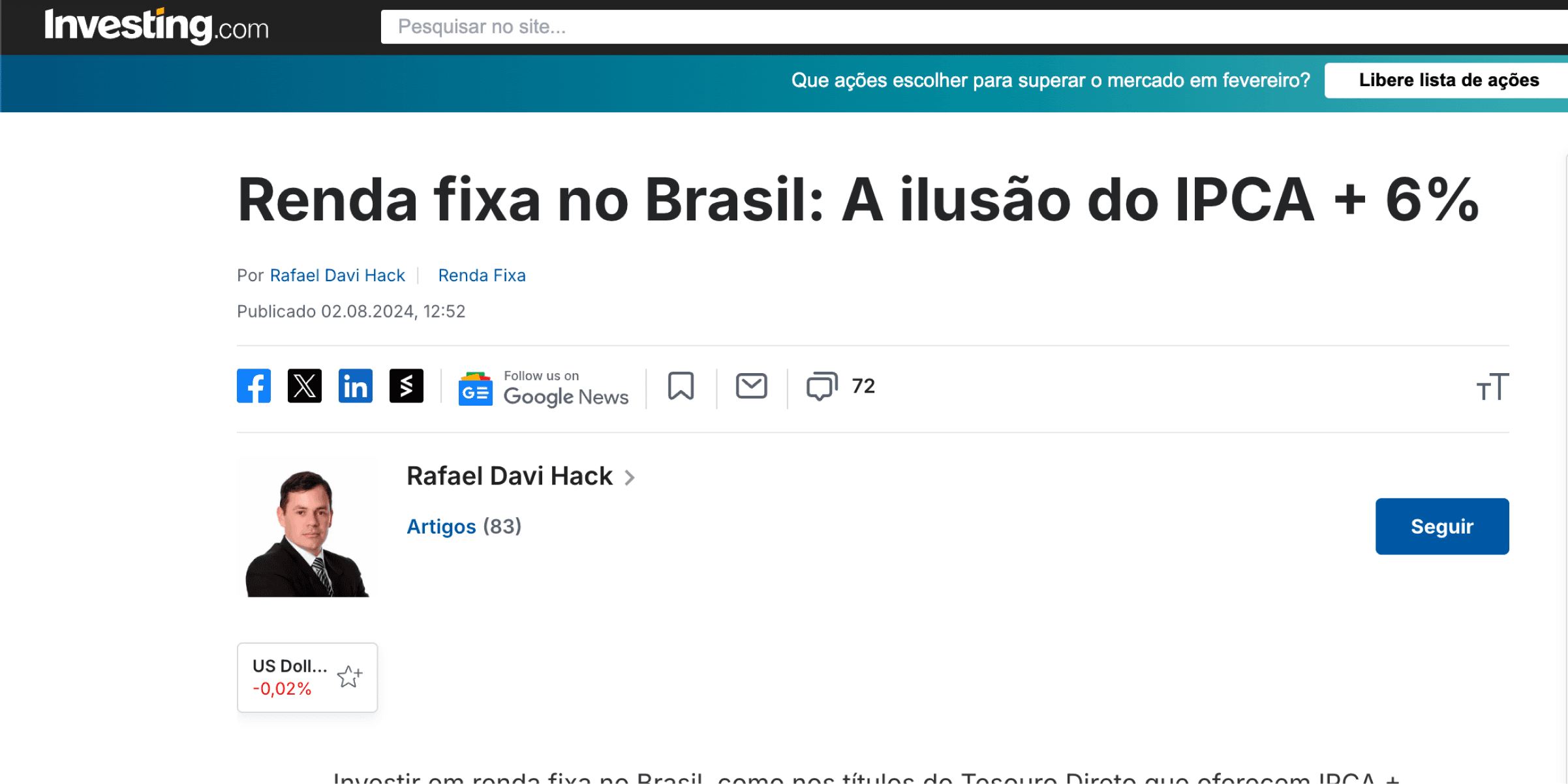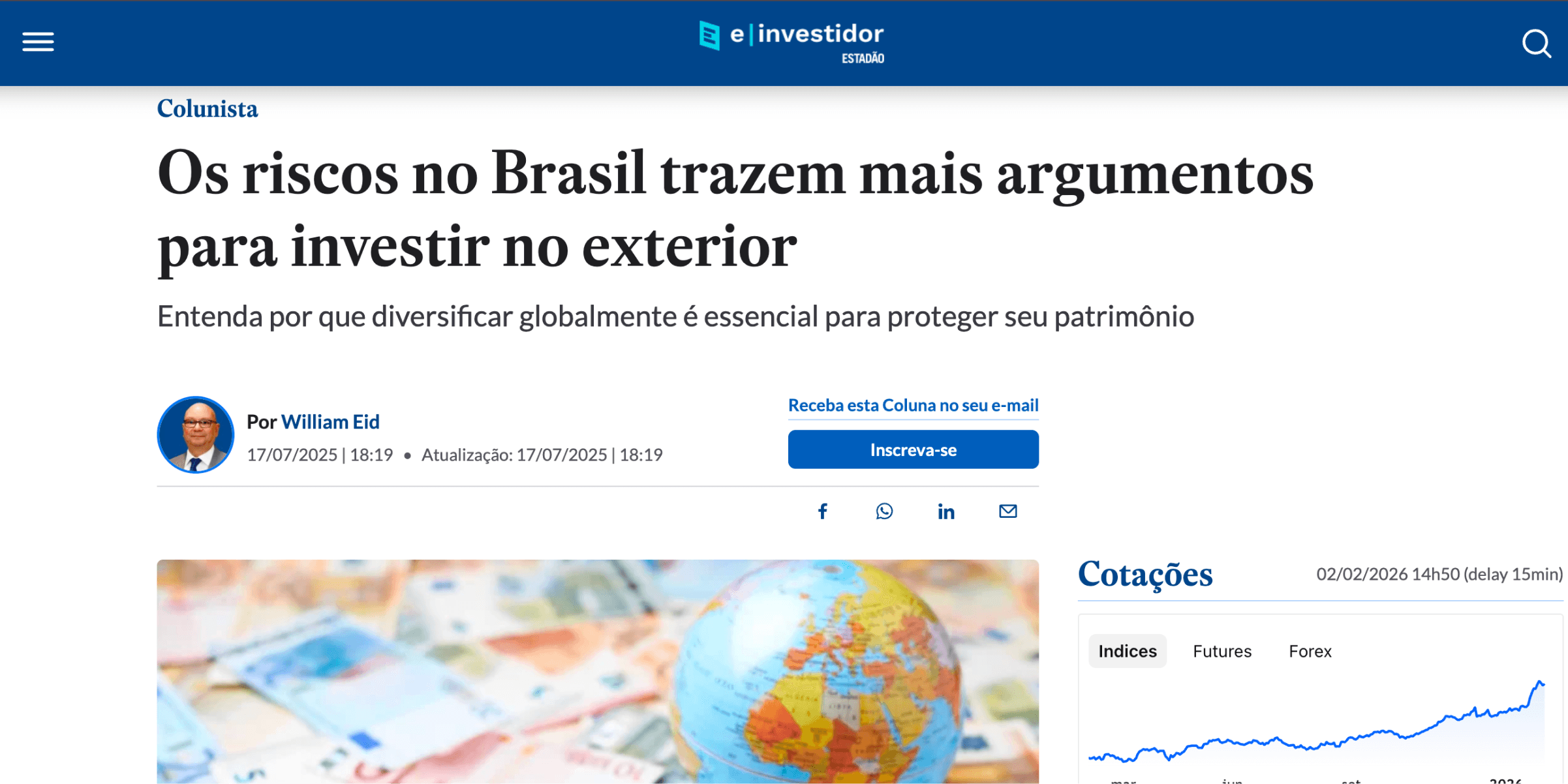 Operamos ativos globais que não dependem da economia brasileira ir bem. Isso reduz a exposição direta ao risco local e ao enfraquecimento do real.
