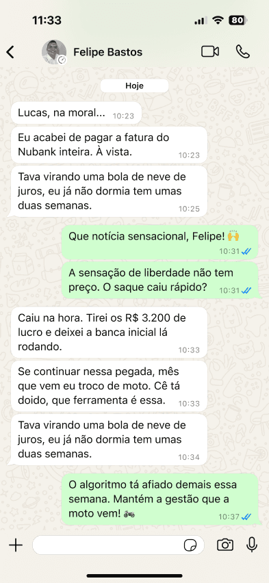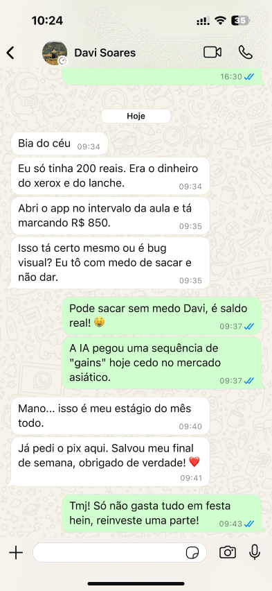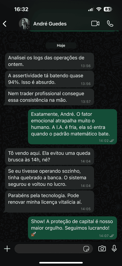 “Para quem opera em alta frequência como eu, precisão e consistência são indispensáveis. O Reflex A.I. vem entregando isso de forma absurda.”