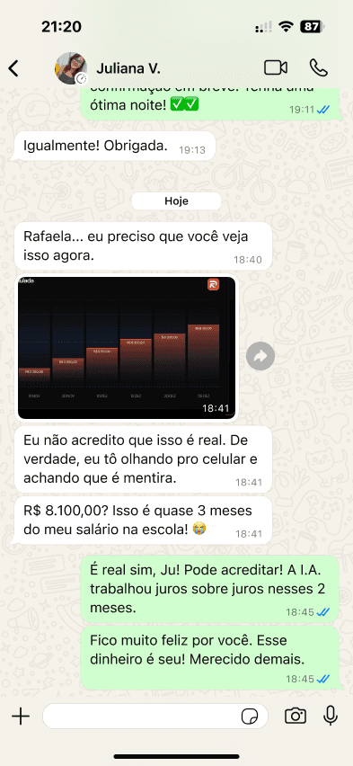“No último trimestre, uma sequência de entradas que parecia arriscada gerou 18 micro-lucros em apenas 12 minutos e TODOS foram replicadas automaticamente pelo Reflex A.I.”